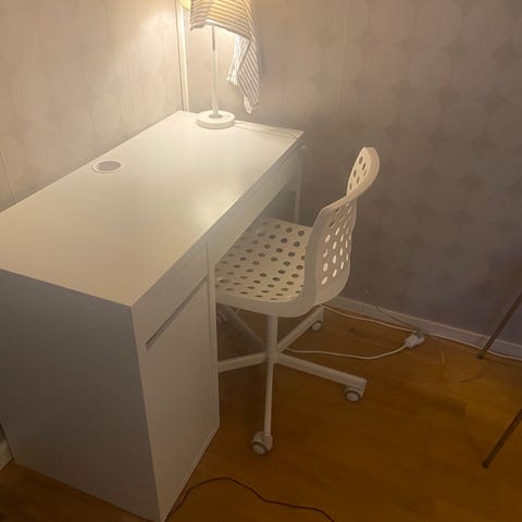 Skrivbord från Alice & Fox med en stilren design. Det har en tillhörande stol och praktisk förvaring. Perfekt för att läsa, måla eller göra läxan vid.