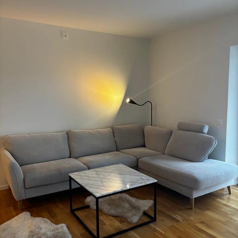 Grå soffa nästan som ny har mest stått som prydnad men knappt suttit i den!