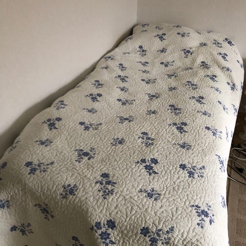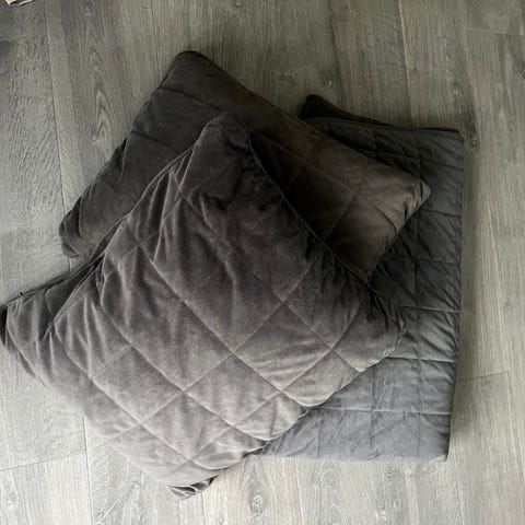 Överkast med kuddar och gardin