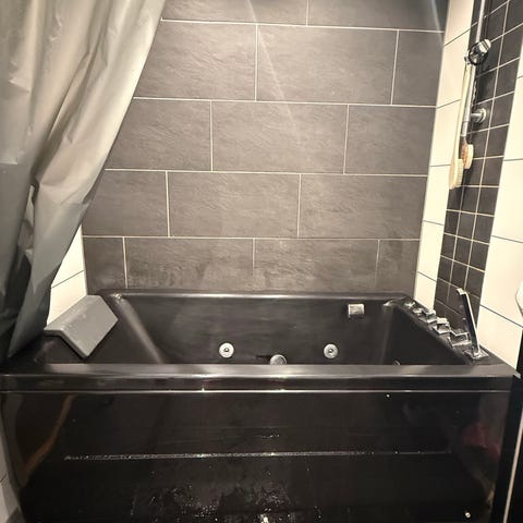 Tubble uppblåsbar badkar med måtten 152 cm längd, 80 cm bredd och 52 cm höjd. Badkaret är beige och tillverkat i ett uppblåsbart material, vilket gör det portabelt och enkelt att förvara.