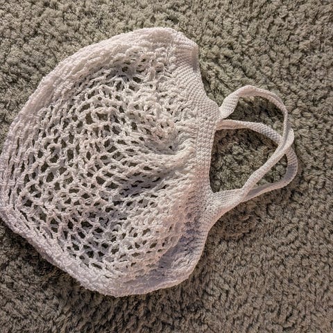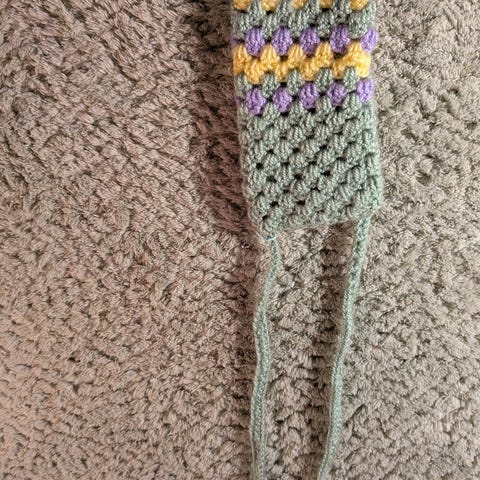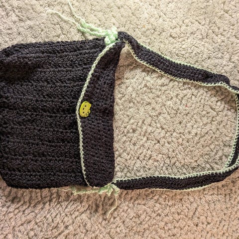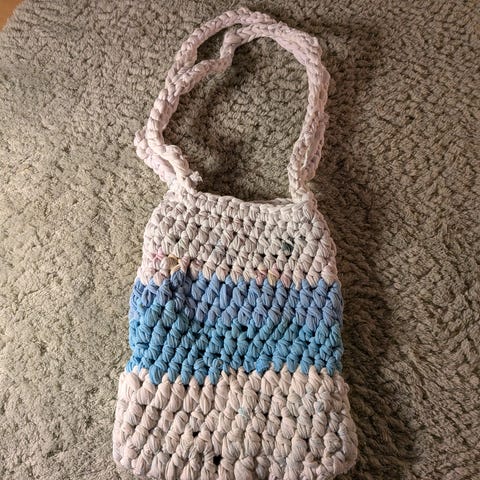 Säljer en virkad "Fanny pack" i svart och vitt med en vit dragkedja.