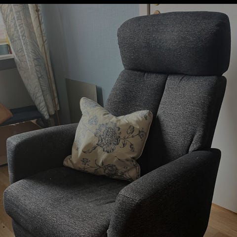 Reclinerfåtölj med fotpall i mycket gott skick från Mio möbler.