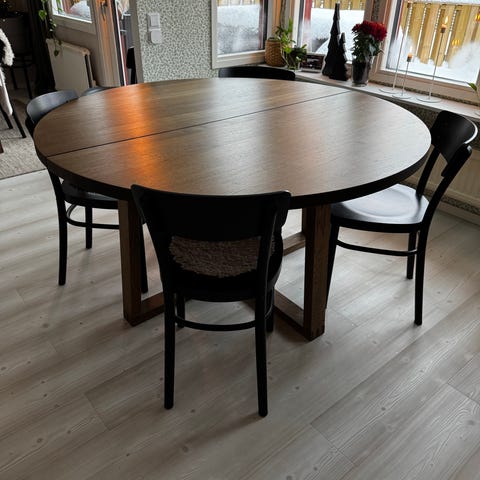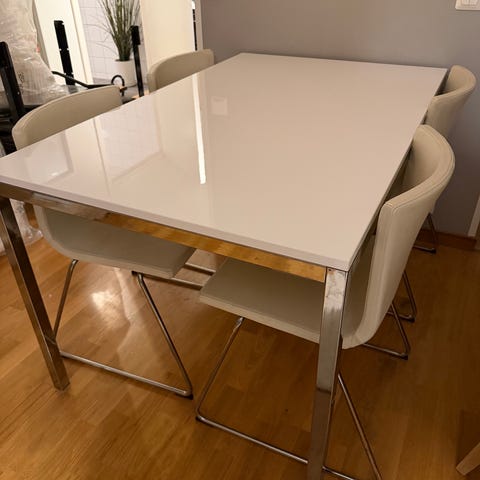 Matgrupp säljes! Väldigt fint skick och knappt använd. Bordet är Mörbylånga från IKEA och även stolarna är från IKEA. Det säljs då det är för stort för vår lägenhet. Stolar och bord säljs tillsammans eller separat.