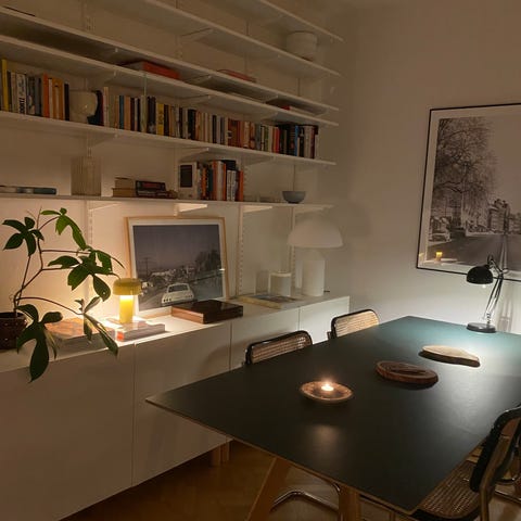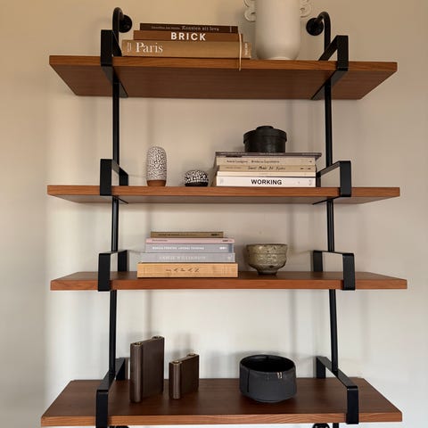 Förvarings- och hyllsystem från Muji. Avsågade regel på ena toppen för att passa in i tidigare konstruktion (jämför på bild 1)