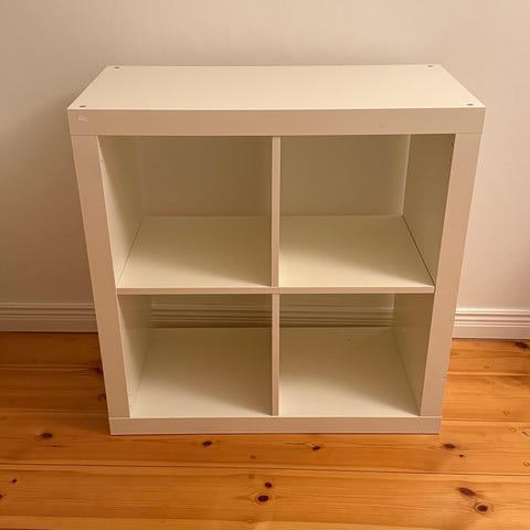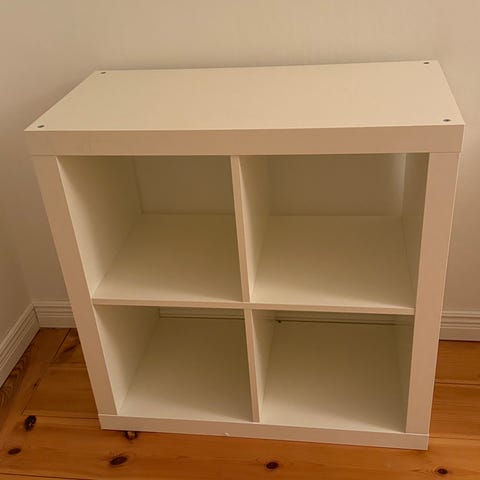 Bokhyllan kommer inklusive fyra byrålådor i fint skick. Översta hyllorna har fläckar, missfärgningar enligt bifogade bilder.