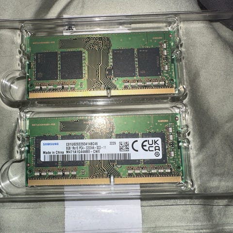 2 stycken Samsung 8GB 1Rx16 PC5-4800B DDR5 SODIMM 4800MHz