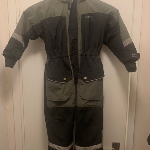 Vinteroverall. Knappt använd så skicket är bra. Däremot har hällorna försvunnit. Knapparna är dock kvar, så det är enkelt att sätta dit nya.