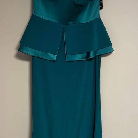 Festklänning i blå & vit färg, storlek S. Klänningen har ett mönster med zigzag-ränder. Kläningen är lång så passar bäst på en långperson med klackar. Finns utanför Malmö