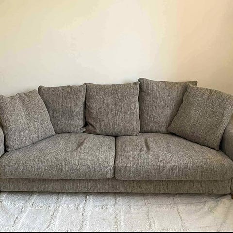Fräsch soffa i vackert grått struktur/sammet. Fem år gammal, överbliven efter renovering.
