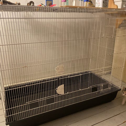 Fin bur som passar som resebur för småfåglar. Går att vika ihop, praktisk.