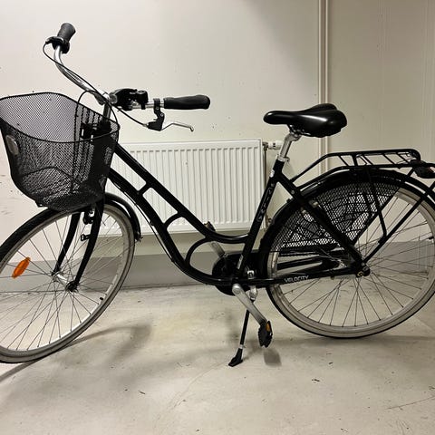 Vi har för många cyklar och säljer vår VeloCity by White, modell Wilma. Cykeln fungerar, stått i förråd året runt. Växlingen kan vara lite trög, går säkert att fixa men det är därför vi säljer den för 1/10 av nypriset. Köpt på XXL för 4 år sen.