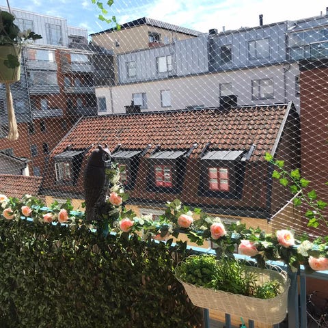 Balkongavskärmning med konstgjord växtvägg
