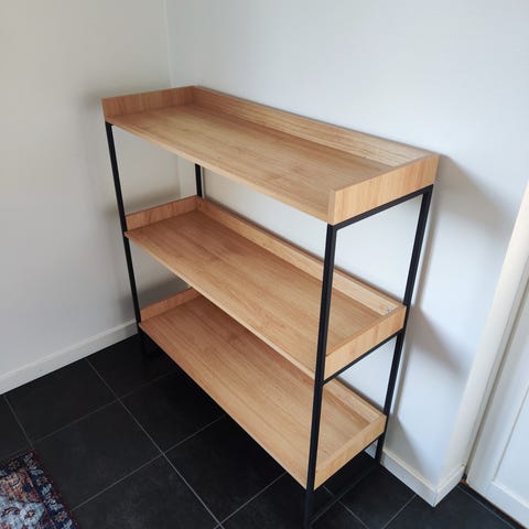 Säljer en hallmöbel från HANNUN i återvunnet trä med rustik känsla och mycket karaktär. Möbeln är handgjord i Europa och tillverkad av återvunnet trä från byggställningar i Nederländerna. Varje exemplar är unikt med naturliga variationer, patina och en varm, åldrad finish.