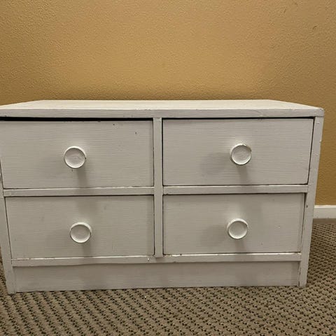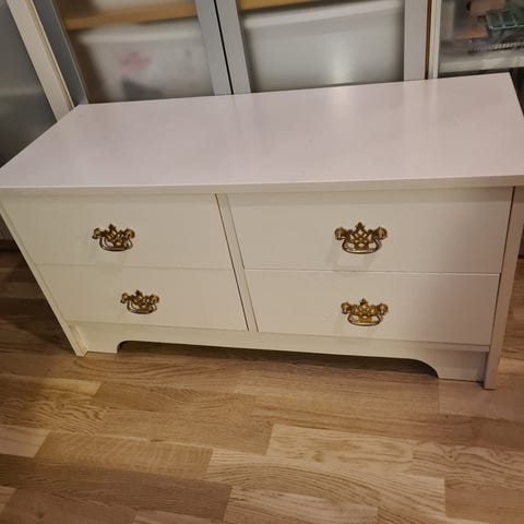 Lådorna behöver lite kärlek då de inte helt rullar rätt i spåret. För dig som är lite händig är detta ett enkelt fix. Priset är satt därefter.