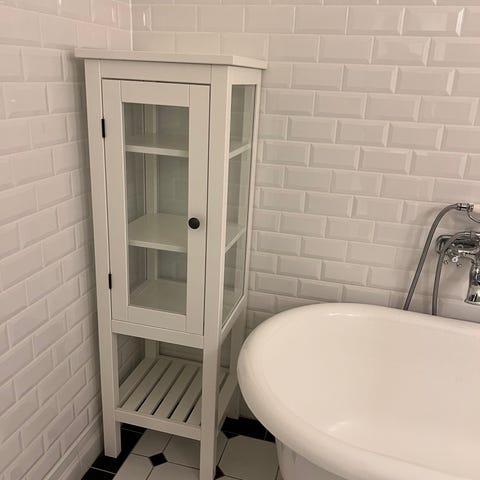 Säljer ett badrumsskåp för en billig peng. Skåpet är i gott skick men har några mindre skrapmärken – se bilder.