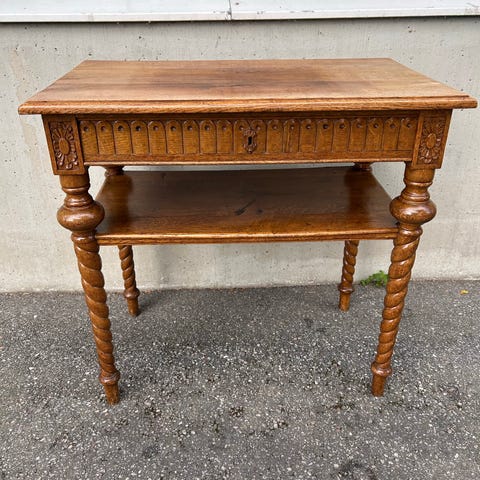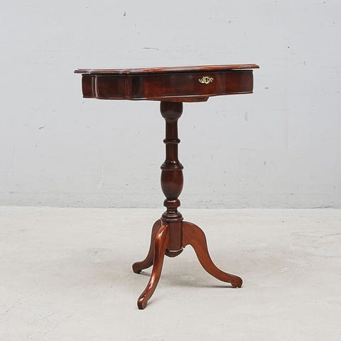 Säljer ett charmigt sybord/sidobord i allmoge stil med fina detaljer och smart förvaring. Möbeln har kurbitsmålning, öppningsbart lock med rymligt fack samt utdragbar låda – perfekt som sidobord, sängbord eller smyckes-/förvaringsbord.