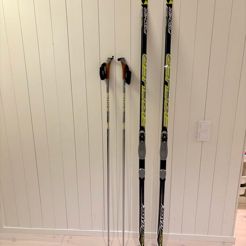 Skidorna är aldrig använda, utan har enbart stått och samlat damm då det inte kommit till användning. Längdskidorna är av modell RS Classic Racing från Fisher och är 197cm långa. På skidorna sitter det NNN-bindning.