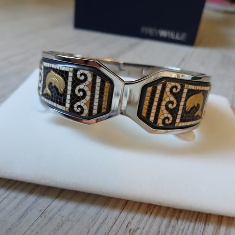 Andra Metaller/Material: Beroende på kollektion kan även andra ädelmetaller eller material användas, men eldemaljen och gulddetaljerna är centrala.
