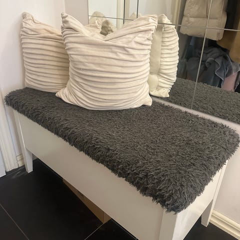 Praktisk hallmöbel i röd, plats för skor, jackor och kläder!