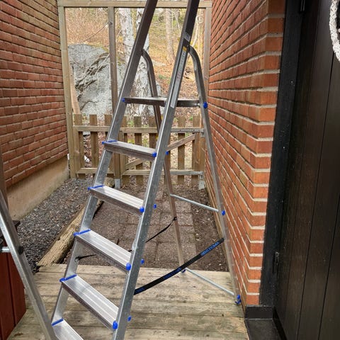 5 steg + plattform. Höjd utfälld 160cm till plattform totalt 190cm