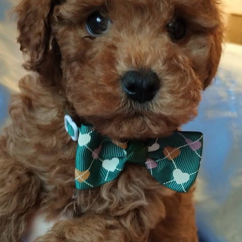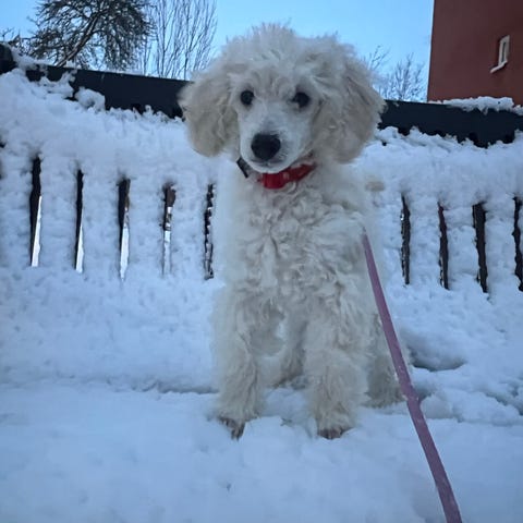 Mycket lovande vit dvärgpudel hane med vackert uttryck och ett vänligt, harmoniskt temperament. Han växer upp i hemmiljö och är van vid dagliga rutiner, hantering samt normal ljudmiljö. Social, nyfiken och trygg – med fin kontakt och god följsamhet.