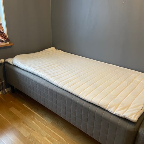 Madrasskydd och vit sängkappa i bomull (se bild 2) kan fås med på köpet om så önskas. Bäddmadrass finns dock inte utan behöver köpas till.