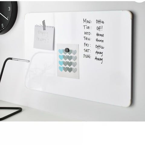 Säljer 2st 199kr/st Vit magnetisk whiteboardtavla i rektangulär form. Tavlan kan användas för att skriva anteckningar med whiteboardpennor och fästa magneter, vilket gör den lämplig för kontor, hem eller skolmiljöer.