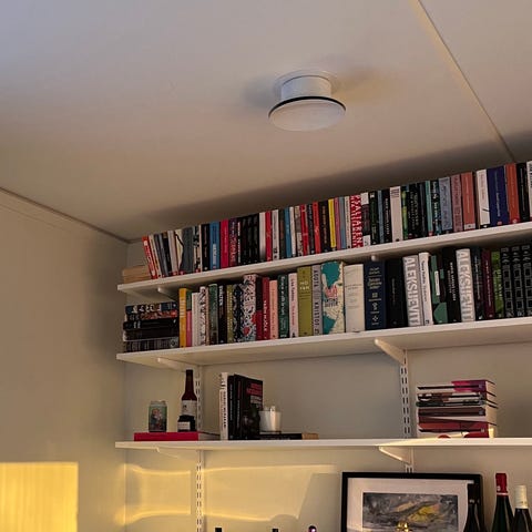 Det finns även en vit spånskiva som kan läggas över stativen om man vill ha dem som bänk. Även den har märken och skavanker.