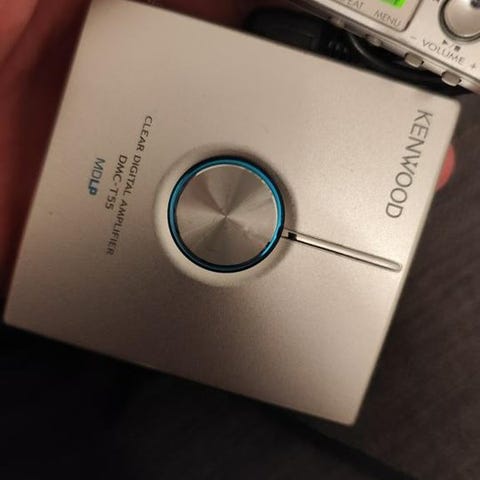 Bärbar Minidiscspelare för lyssning och inspelning. Komplett med hörlurar/kontroll, laddare, manual. Dessutom ett antal nya Minidiscar för inspelning