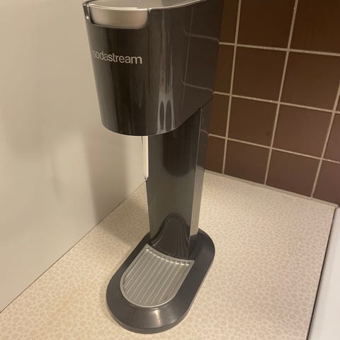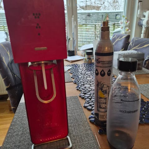 Elektrisk kolsyremaskin SodaStream Power, vit/metallic. 3 kolsyrelägen, låg,mellan,hög kolsyrenivå. Inkl.kolsyrecylinder och i mycket bra skick.