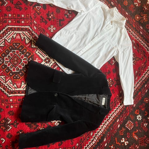 Svart kavaj med byxor och väst. Som ny priset kan diskuteras.