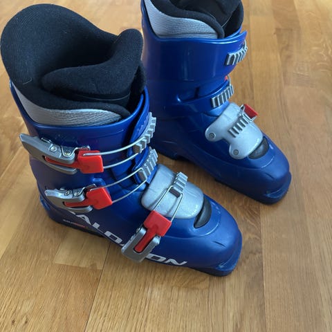 Nordica GP 08 skidpjäxor i svart och silver med röda detaljer, storlek ca 37. Pjäxorna har fyra spännen för justering och en mjuk inredning för komfort. Designade för alpinskidåkning. Slalompjäxor