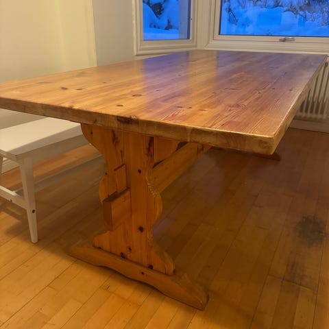 Rejält bord med plankor (4st) av återvunnet trä från dörrar etc. Behandlat med vax.
