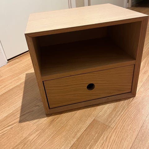 Säljer två Eket skåp/sängbord från IKEA. Orginalfärg är grågrön, men målade vid tillfälle om i fin greige kulör från Jotun. Färgen finns ej kvar i deras standardsortiment, men hette Grey Touch.
