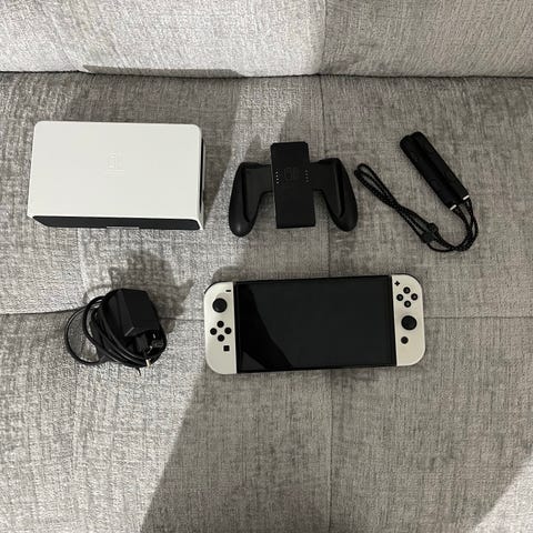 Bra skick, dock stick-drift på höger joy-con. Två PRO-controller som ansluts med bluetooth, samt original laddningssladd + original HDMI-sladd medföljer.
