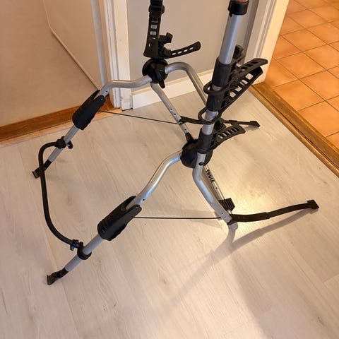 Thule Euroride 3 cykelställ i svart färg. Cykelstället har kapacitet för tre cyklar och är avsett för montering på bilens dragkrok. 7 pin, integrerad belysning och tiltfunktion för smidig öppning av bakluckan på bilen. Tillverkat av robusta material för säker transport av cyklar.