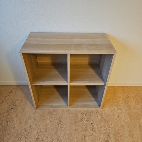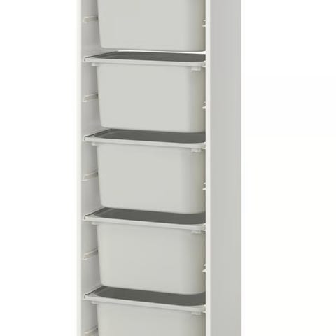 Vit förvaringsmöbel med fyra lådor, perfekt till ett barnrum. Fint skick, men i den översta lådan har det förvarats kritor som har missfärgat botten lite grann.