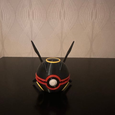 Pokémon boll Rayquaza figur i grön färg med röda och gula detaljer. Figuren har en rund form med utstickande delar som representerar karaktärens unika design.