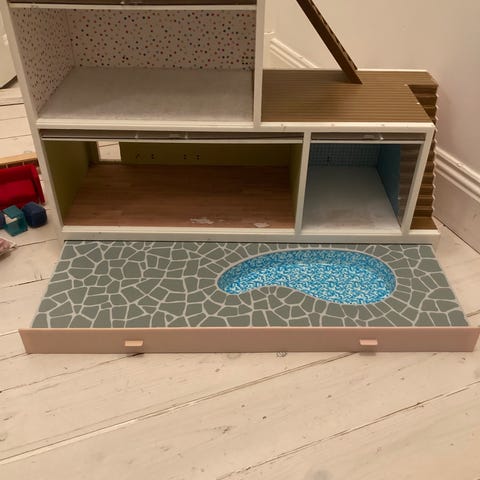 Den skänkes bort för att den saknar skruvar och staket. Men det går ändå att sätta ihop och använda vilket syns på bilden.