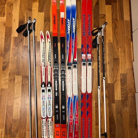 Längdskidor 140 cm. Märke Madshus. Bindning på skidorna är Rottefella, två spår NNN.
