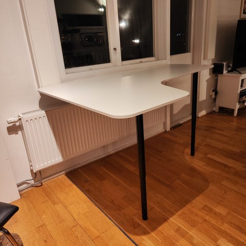Ikea BEKANT hörnskrivbord vänster, 160 x 110 cm, svartfläckad askfaner/svart.