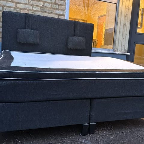 Jättefin kontinentalsäng som är 160 cm bred. Sänggavel och nackkuddar medföljer.