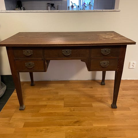 Antikt skrivbord i trä med två lådor (nyckel ingår)