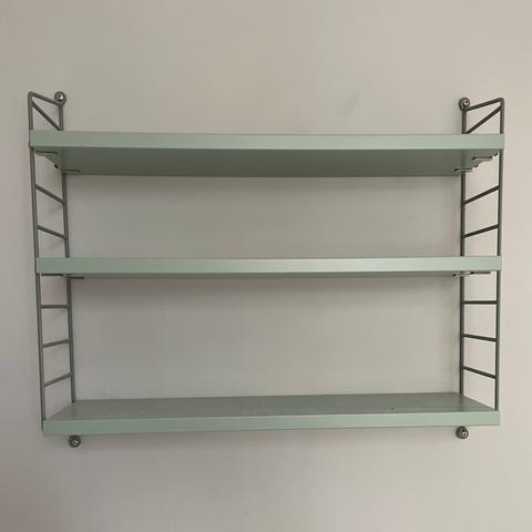 String lådhurts. Lådorna glider fint, inga problem med funktionen. En hel del skav, se bilder. De fyra krokarna har försvunnit så man behöver komplettera med det. Den lilla "pluppen" på sidan sitter kvar, se bild.