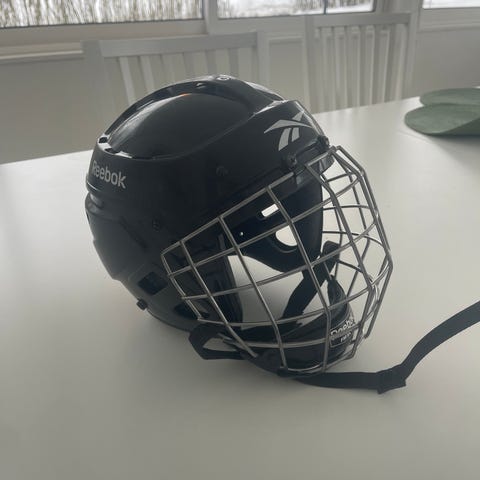 Hjälmen inte använd så mycket. Köptes när sonen skulle börja med hockey som 6 åring.. Han var där två gånger 😄.