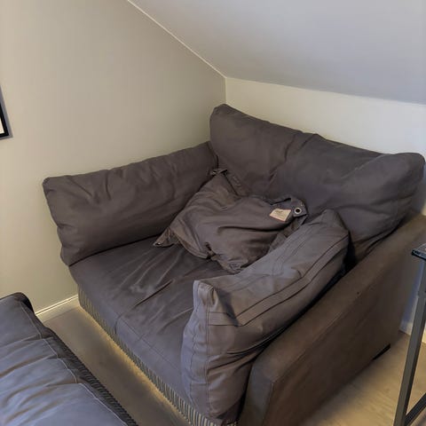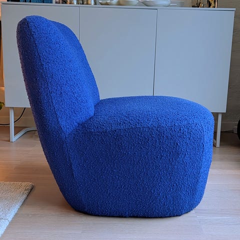 Älskar denna fåtölj - den har dock flera synliga mindre hål i tyget som behöver sys igen, och sitsen behöver tvättas.