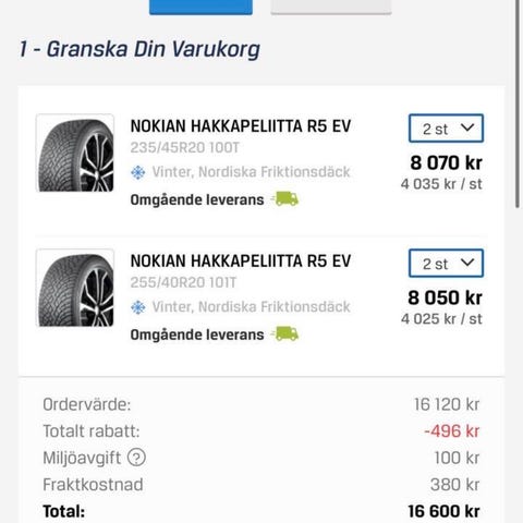 Säljer hjul jag inte behöver 245/45-20 6-7 mm ditt 2022 fälgar 5/112 66.6 nav en fälg avvikande er 10mm så så kickar med dom när du köper däcken.