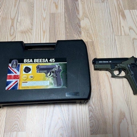 Säljer en Bersa BP9CC 4,5 mm CO2 luftpistol. Realistisk replika i metall och nylon, avsedd för stålrundkulor BB 4,5 mm. Har legat mestadels i förvaring och säljs nu vidare.