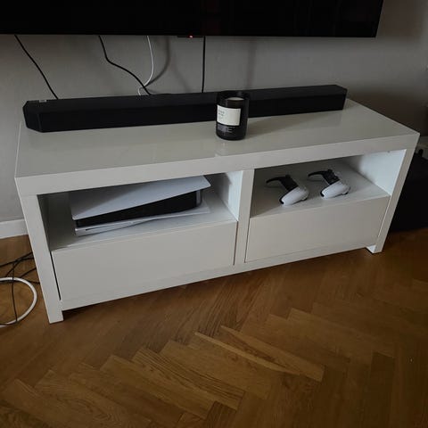 TV-bänk Kagstrup, vit, i fint skick säljes. Bredd 80 cm, djup 35 cm och höjd 40 cm. Fast hylla ca 20 cm från golvet.