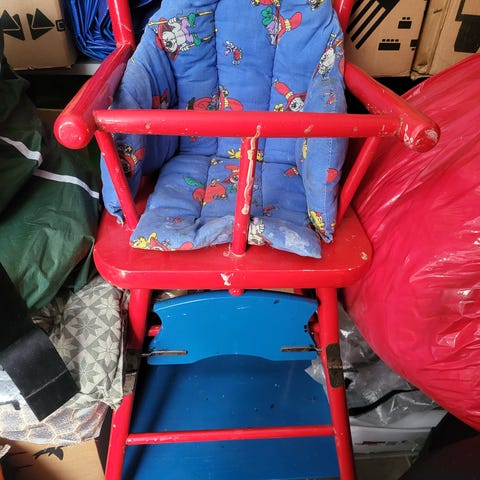Barnstol (för mindre barn) i trä. Målad i bubbelgum-rosa.